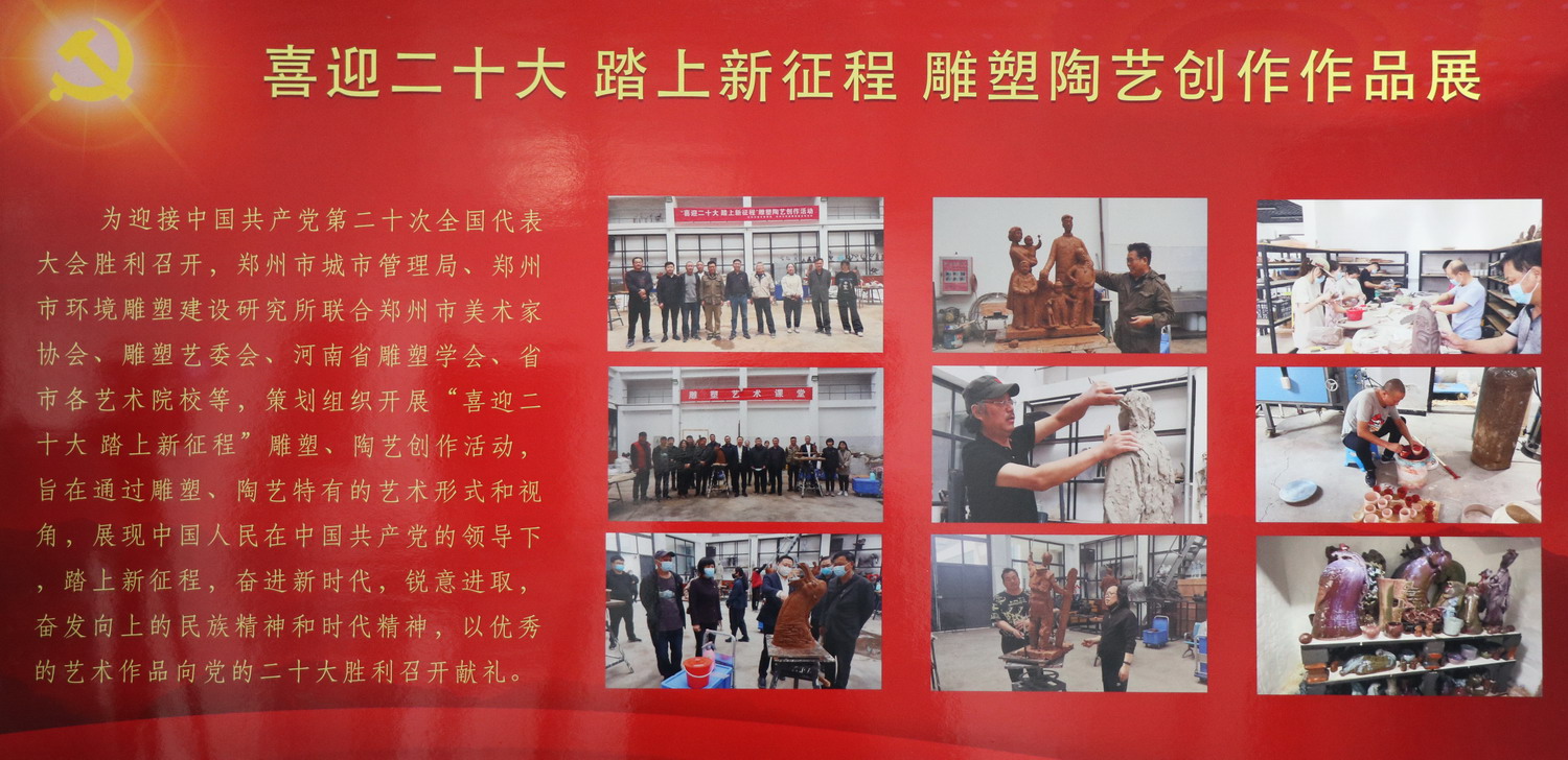 为庆祝中华人民共和国成立73周年,迎接党的二十大胜利召开,由郑州市城市管理局、郑州市美术家协会、河南省雕塑学会主办,郑州市环境雕塑建设研究所、郑州市美术家协会雕塑艺术委员会、郑州陶瓷行业协会、河南师之道文化传播有限公司承办的“喜迎二十大 踏上新征程”雕塑陶艺创作作品展,9月28日上午10时在郑州雕塑艺术馆(郑州市环境雕塑建设研究所内)开幕。