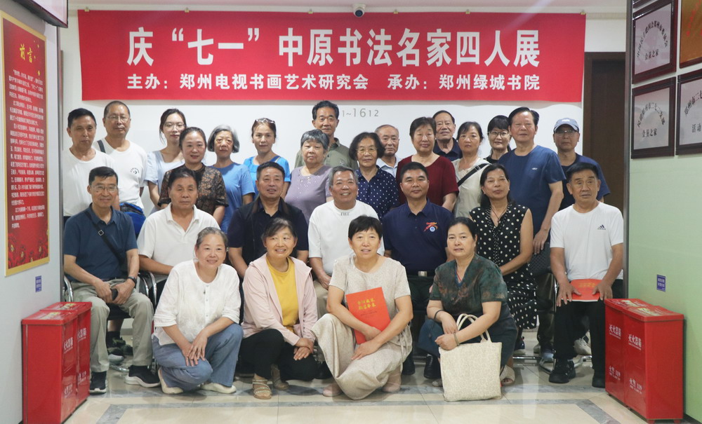 7月26日下午,河南省书画学会暨致远书画院及老干部活动中心楷书学会全体会员在张洪涛院长带领下怀着对书法的挚爱冒着酷暑到绿城书院参观中原书法名家四人展,由著名书法家韩湘人导览讲解。