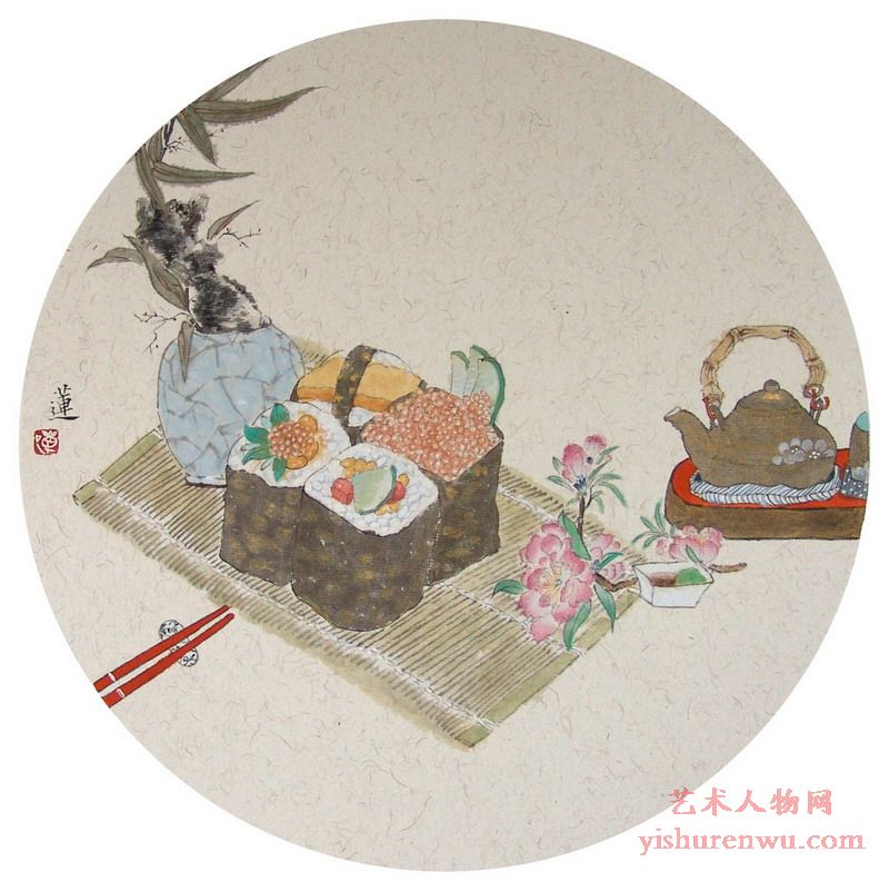 舌尖上的丹青 寿司 纸本35cm×35cm