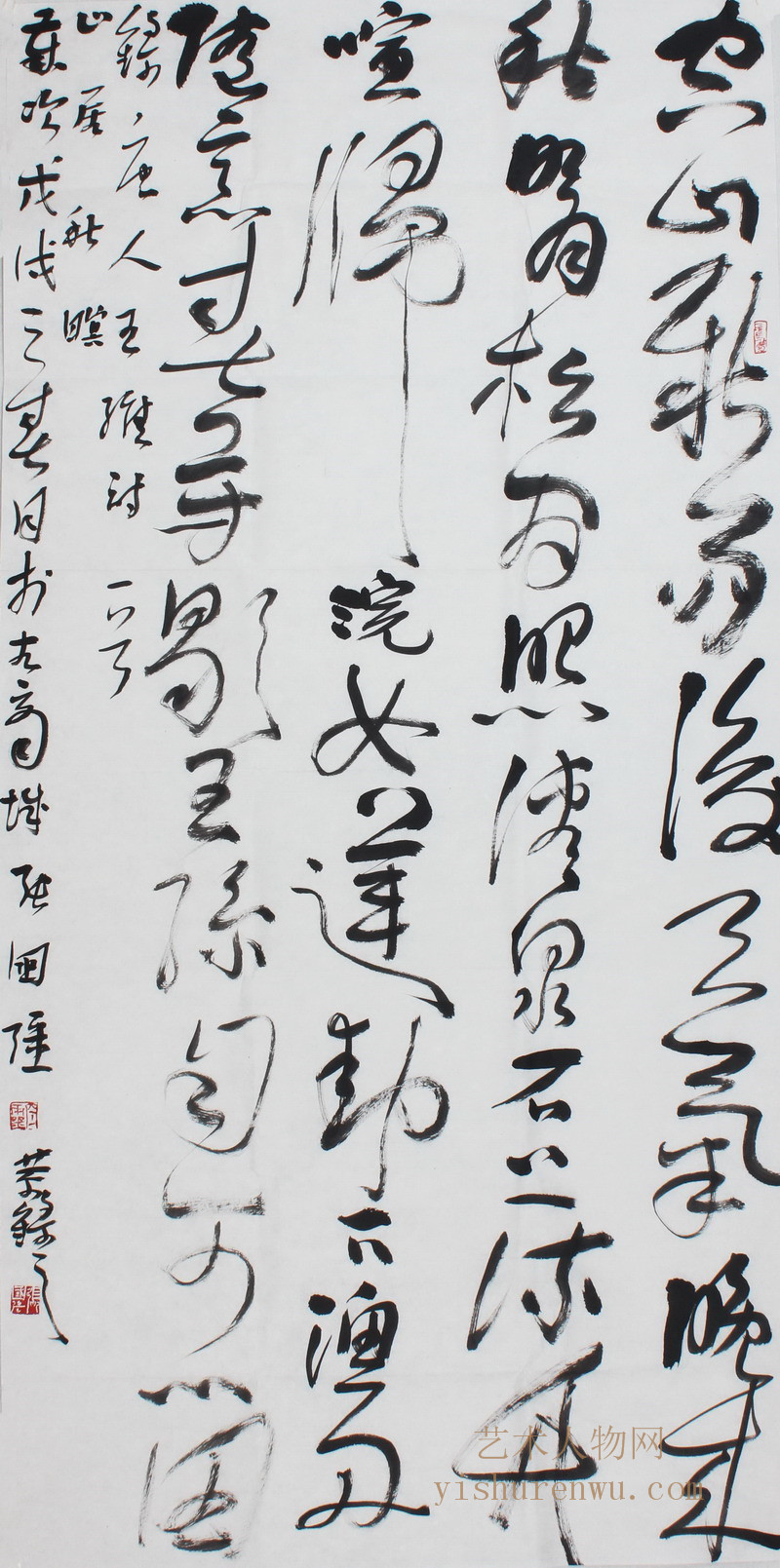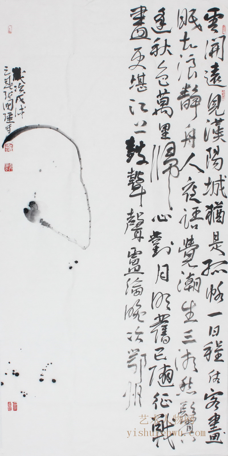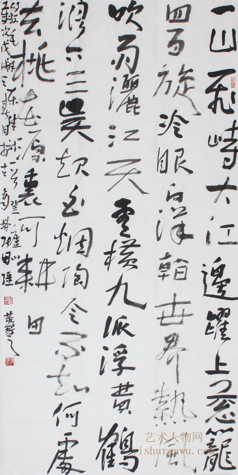 他为人素宽和介朴、洒脱率真;为人游艺、皆以宽蔼为宜,有谦谦古君子之风。故世人多喜与之游洽。兄书艺取法高古,碑帖兼容;下宗魏碑、上朔秦篆,金文甲骨、皆有涉猎。是故书艺大进、日趋佳境。兄初以古为师,寒暑经年、执笔不辍;从而打下了扎实的书法功底。从书法大师王建国先生游艺,良师益友的耳提面命、言传身教;兄之获益匪浅,日渐精进。是以诸体兼善,历届书展皆有斩获。古人曾谓:“书者、心画也;心画形而人之邪正分焉”。《扬子文集》 “若拘于体物,则未见精粹;若取之像外,方厌膏腴,可谓精妙也”。(南齐谢赫《画品》)所说的是一种境界,书与画皆为“心画”,即由心现;更是心灵的表现,性情的流露。书法的境界与绘画类似,也是通过笔墨、线条、构图、章法、干湿浓淡等笔墨语言来体现的。所不同地是书法仅依靠线条和黑白对比,主张“以意为主”、“意在笔先”;强调“表现”,但又要求寓“表现”于描述中,使“意造境生”,通过“摄情”和“写貌物情”,达到“滤发人思”。凭借有限的视觉感性形象,在虚实结合,线条变化,黑白对比中,诱发联想和想象,使观者在感情化的“不尽之美”中,受到感染,领会其“景外意”以至“景外妙”,潜移默化地发挥其审美作用。细读国强兄的书法作品,可谓深谙其个中之三味。其运笔苍劲朴拙、酣畅灵动,疏而不散、密而不塞,纵敛得宜,错落有致,率意挥洒,气韵天成。既有跌宕腾掷、苍劲浑穆之姿,又有静谧古雅、精微清逸之态;洒然自得、雅澹天成,诚逸品是也。