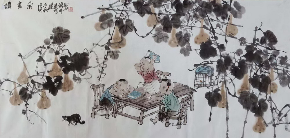 他的童子画有的是对童年生活的回忆,更多的是对中原大地儿童生活的观察。作品不仅具有趣味性,而且具有生活的真实感。他的童子画可以将欣赏者带到天真无邪的童年生活,一种朴实、自然、纯真的童年生活。