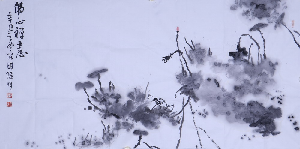 康有为说“用笔妙处在方圆并用,不方不圆,亦方亦圆,或体方而用圆,或用方而体圆,或笔方而章法圆,神而明之,存乎其人矣。”张国强魏碑,先从《张梦龙》、《始平公》入,得方笔精髓,又从《爨宝子》、《石门铭》出得稚拙、圆浑笔势,折锋之处有棱有角、峻利挺拔,转锋处圆融通畅、筋骨内涵。古人说“水墨者,字之血也”,故“墨法”又称“血法”。字的“血肉”就是纸上的水墨。“笔飘则墨浮,笔涩则墨沉”,只有水墨调和,墨色绚烂,才能达到筋遒骨劲、血浓肉莹。张国强先生善用墨,淡墨萧疏蕴含禅意,浓墨苍茫富含生机。墨色的干湿浓淡变化,不仅与笔法的轻重缓急相融合,增强了节奏感,而且起到渲染效果使作品韵味更强。一件书法佳作,不只要求点画精到、结体优美,而且要求章法完整,墨色和谐。