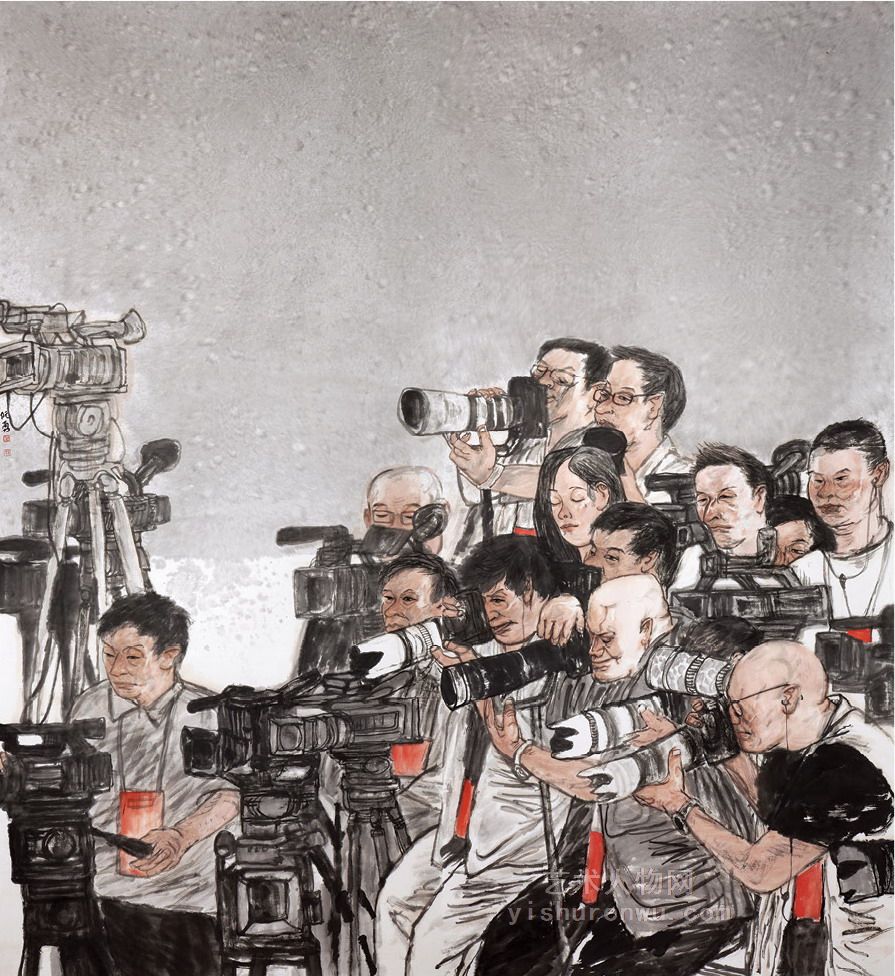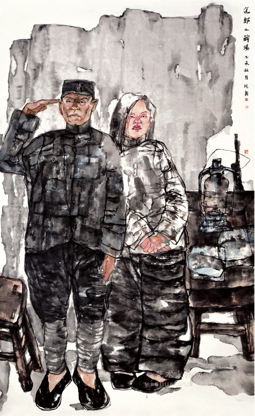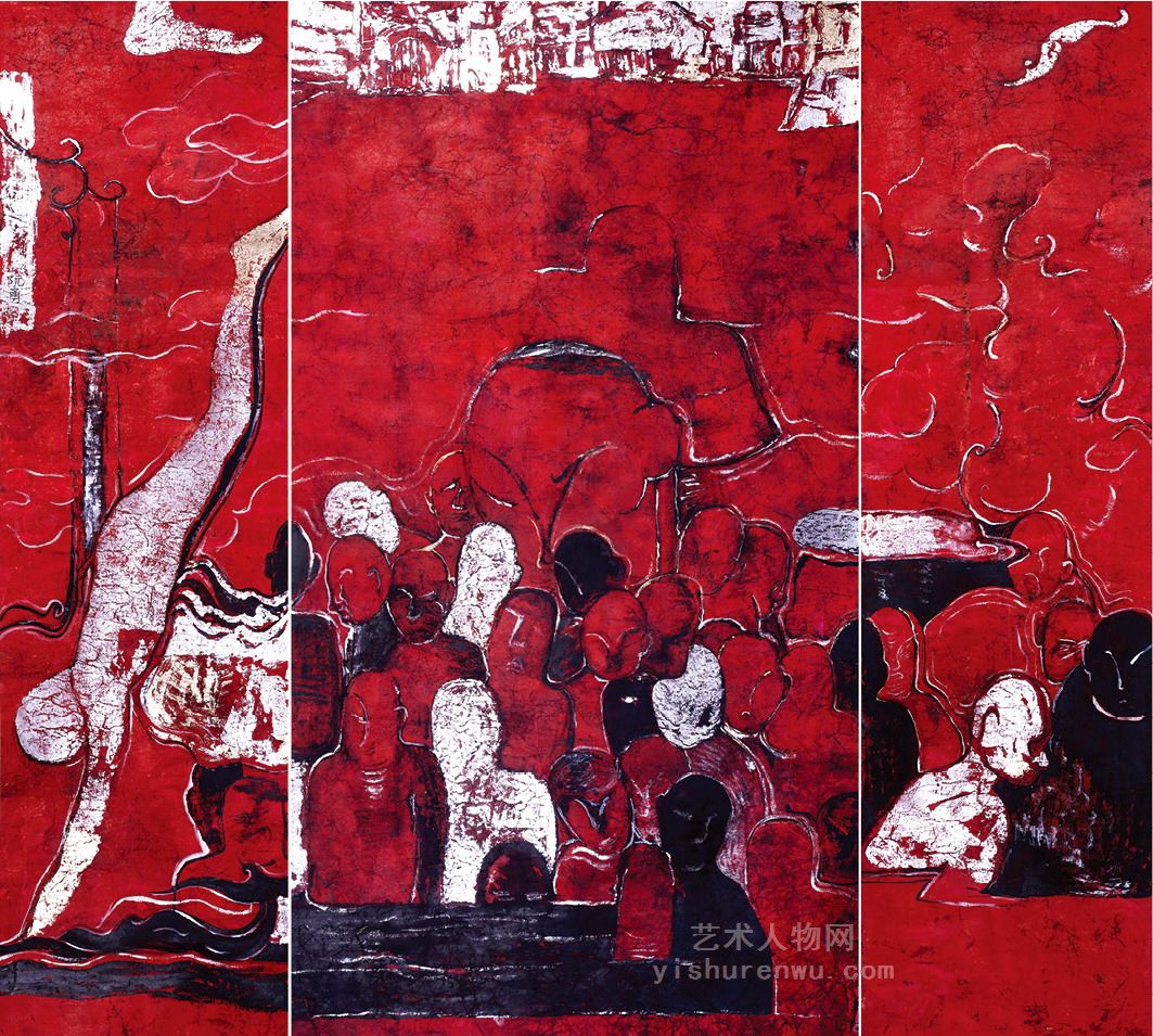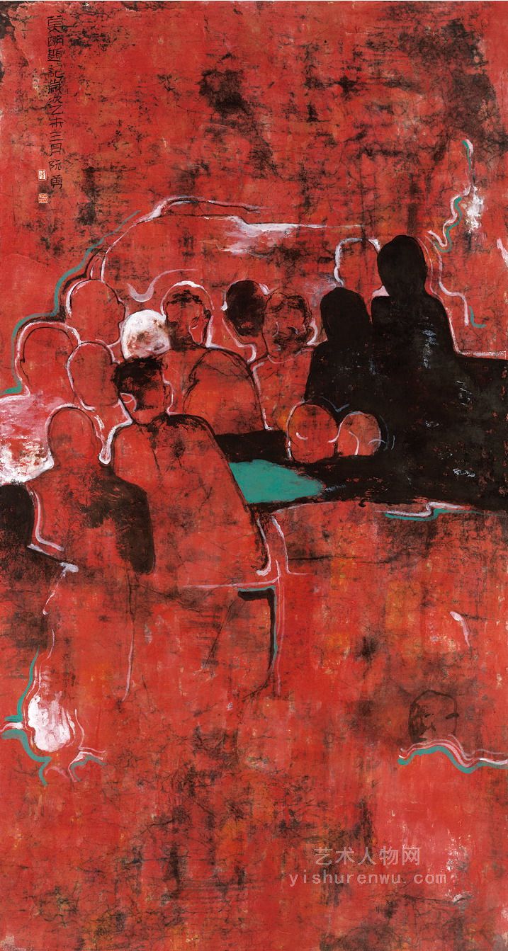 阮勇的多体人物画,以丰富的情节想象、大胆的造型夸张,讲述了一个个动人的故事。在故事里,人物的肢体语言,人物的形象风采,人物的活动环境,都表现的清清楚楚,从而使读者达到如临其境的艺术效果。阮勇在多体的人物画中,善于刻画具体的人物形象,使画中每个人物各具形态,然后巧妙措置,使这些被表现的各种人物,按照画面形式需要出现,或大或小,或虚或实,或详或略,从而把画面的节奏掌控的有条不紊。初读其画,引人入胜,细审其画,爱不释手,他的多体人物画是一曲声情的并茂生活之歌。