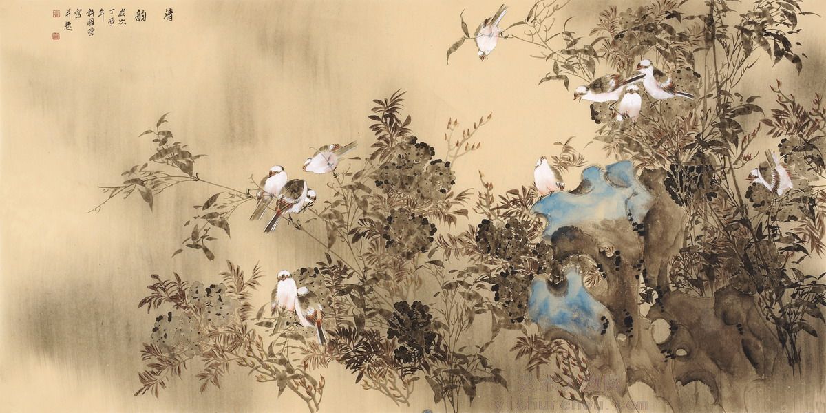 其作品源于传统,深得任伯年、王雪涛、高奇峰等花鸟画艺术之真谛。其作品格高、意远、境妙、情真、古色古香、雅俗共赏,深受广大书画爱好者的喜欢和收藏。