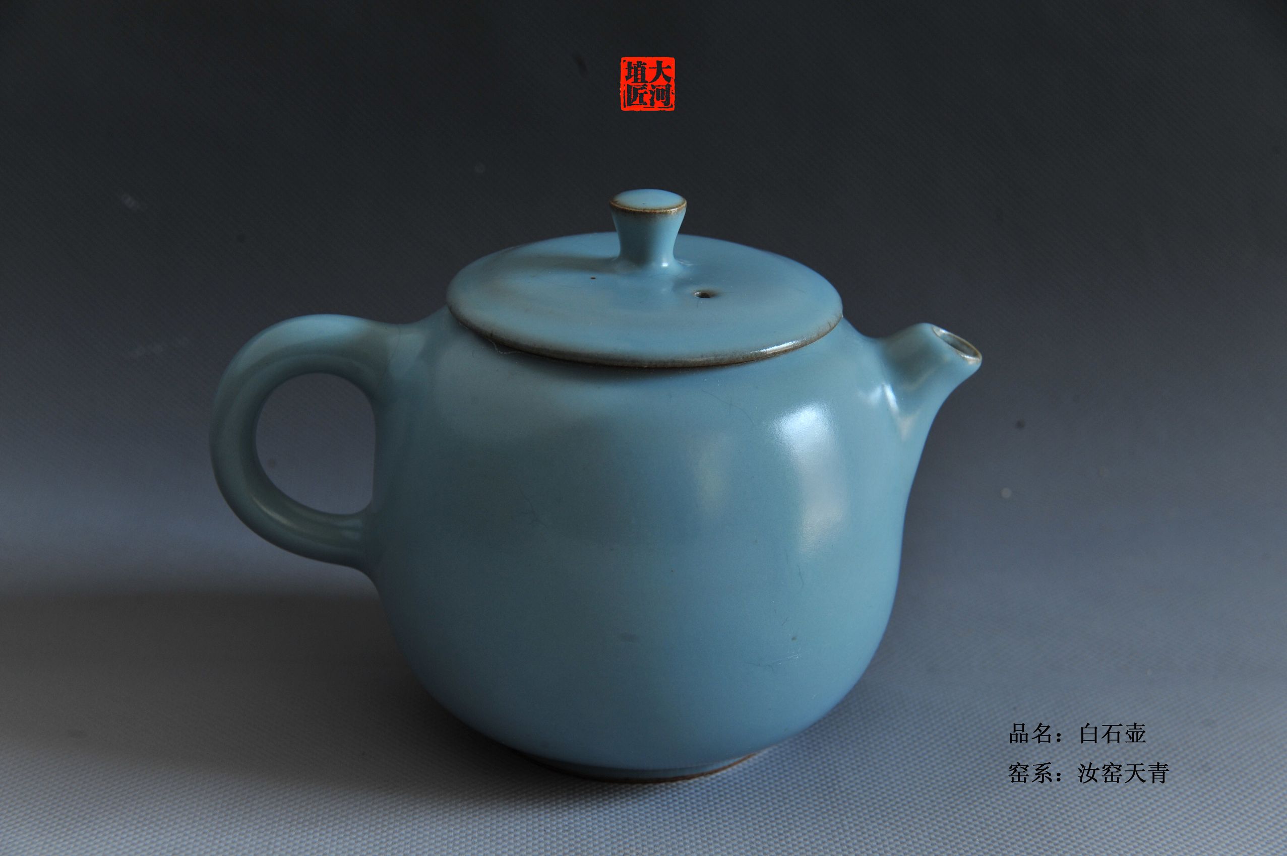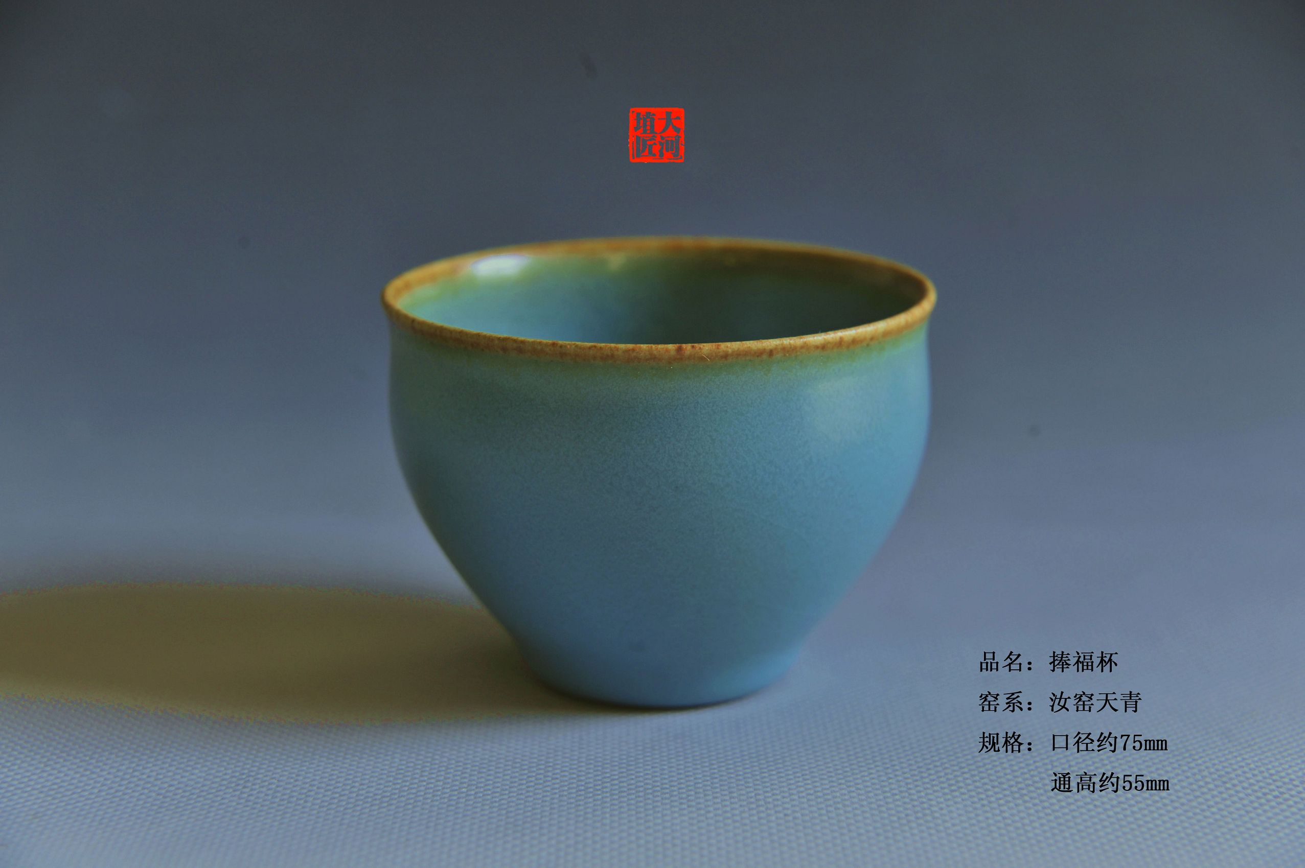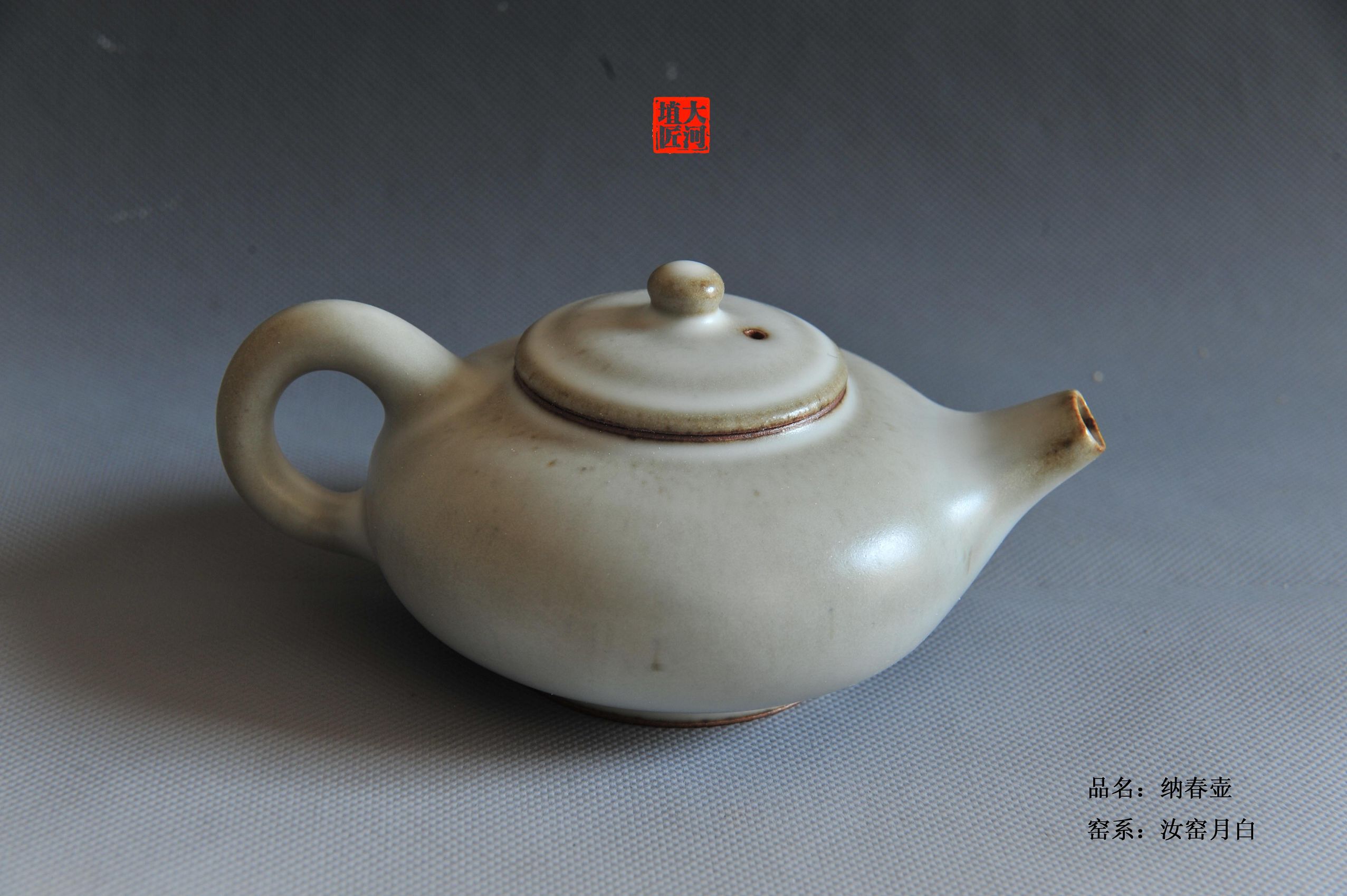 “大河埴匠”所造之器,以玛瑙入釉,裹足支钉烧造,器型考究,釉质浓润,青色含壁,通透如雨后晴空,沉静幽玄寂谧韵,犹如神工造化,不可复得;月白釉色缥雪素肌玉骨相,光泽酥魅莹润如旧造,仿若天作之律,难以重现。