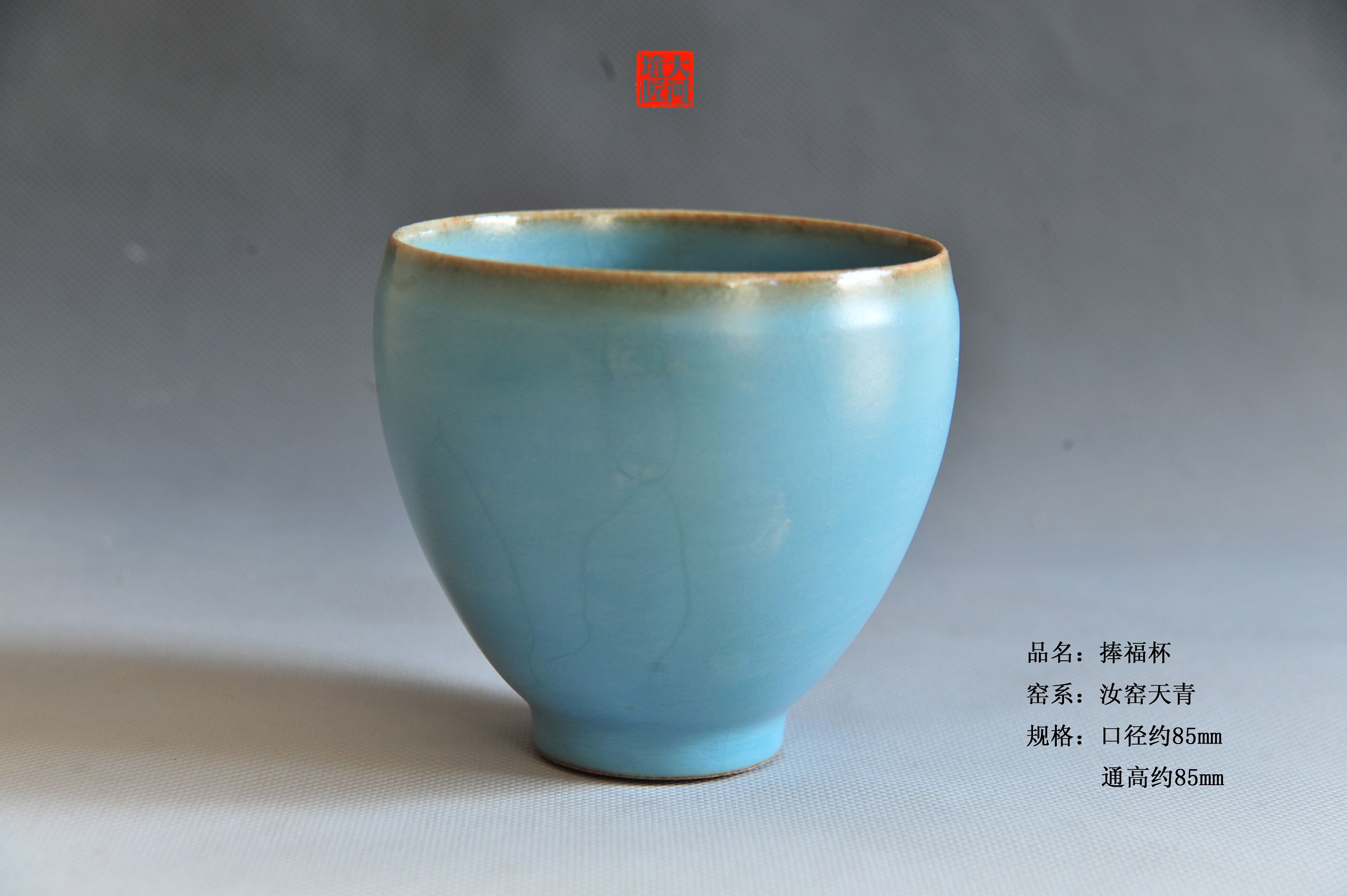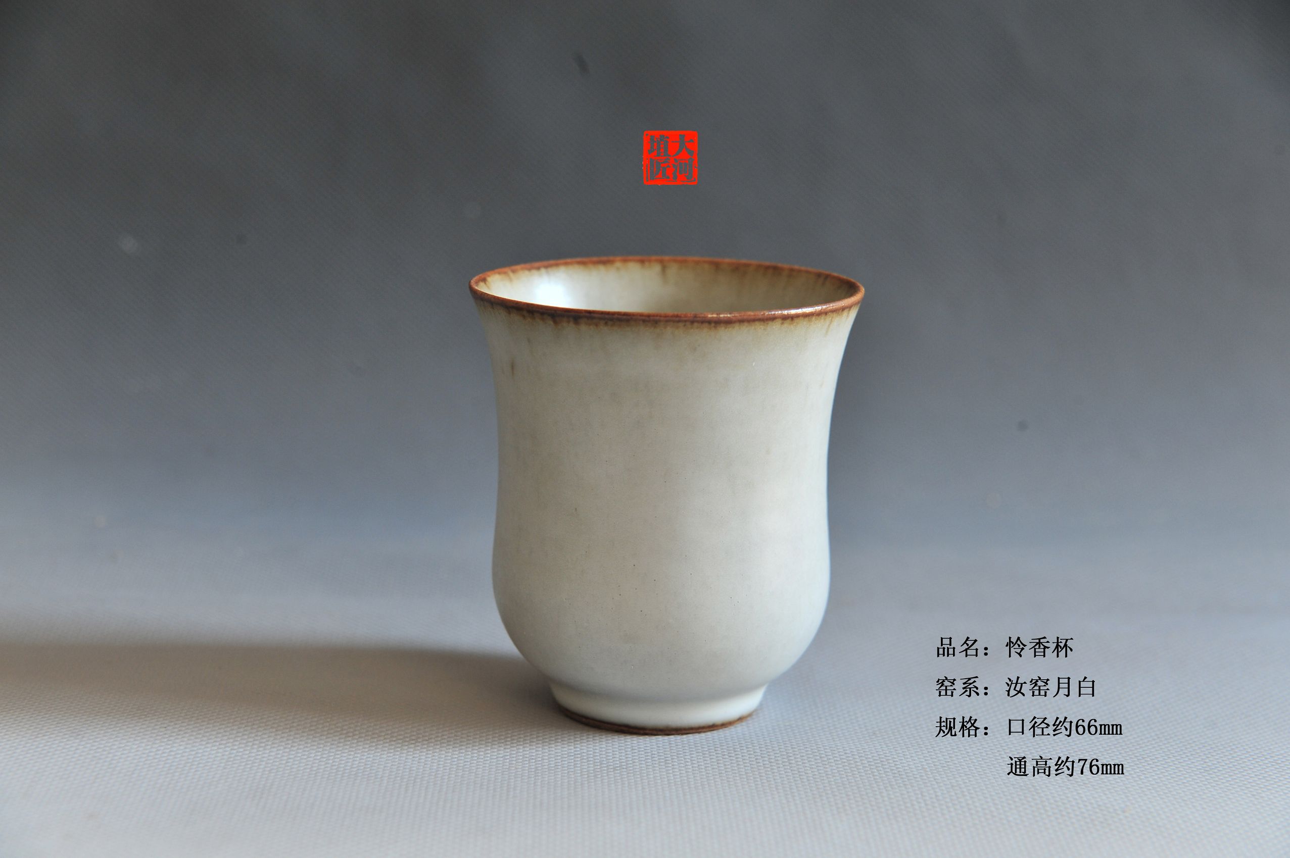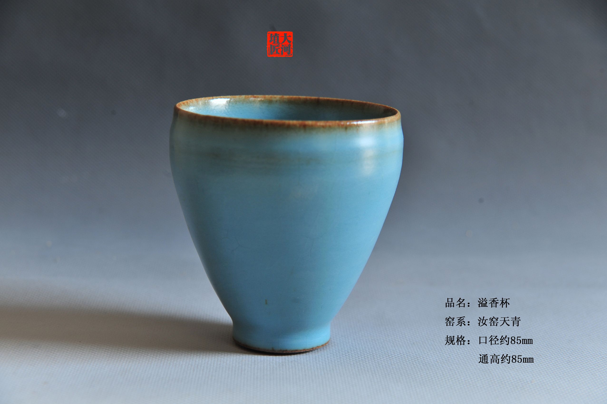 “大河埴匠”所造之器,以玛瑙入釉,裹足支钉烧造,器型考究,釉质浓润,青色含壁,通透如雨后晴空,沉静幽玄寂谧韵,犹如神工造化,不可复得;月白釉色缥雪素肌玉骨相,光泽酥魅莹润如旧造,仿若天作之律,难以重现。