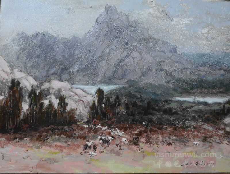 山谷最初一束阳光-霜降 100x100cm 2016年